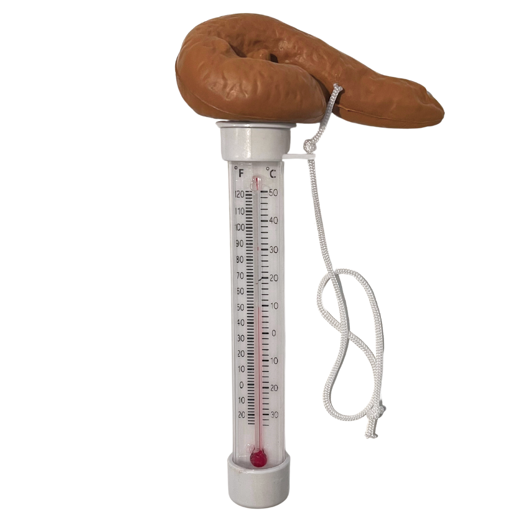 Humoristinen kakka lämpömittari uima-altaaseen.