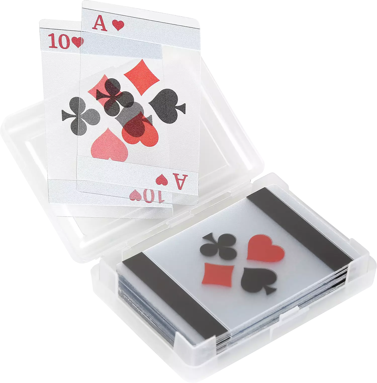 Vedenkestävät pelikortit Nämä vedenkestävät pelikortit tuovat hauskanpidon mukaan myös kosteisiin ympäristöihin! Kortit on valmistettu kestävästä ja taipuisasta muovimateriaalista, joka... Lue lisää