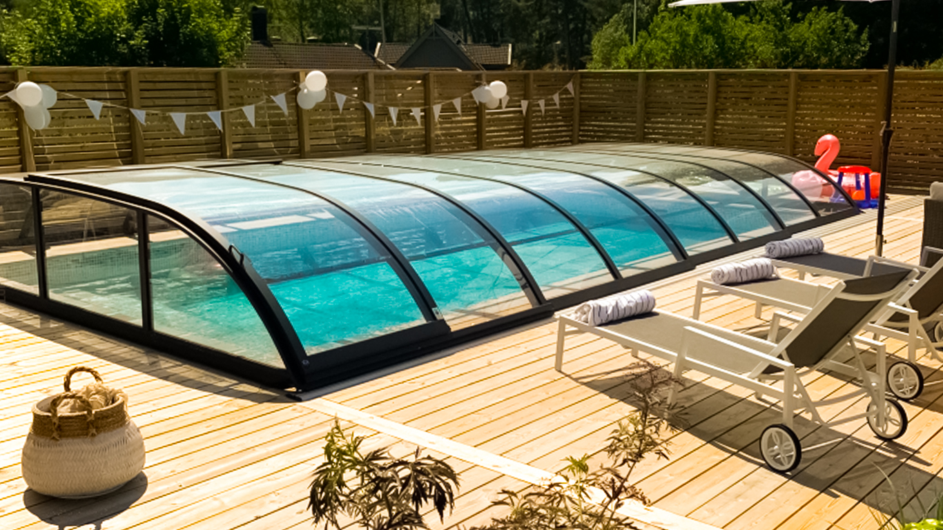 Haluatko nauttia uimisesta UV-suojatun katteen alla vaivattomasti ja huolettomasti? Haluatko katteen joka oikeasti kestää lumikuormaa. Alunan Wave katteen patentoitu kiskojärjestelmän ja rakenteen ansiosta se on maailman kestävin polykarbonaattikate.
