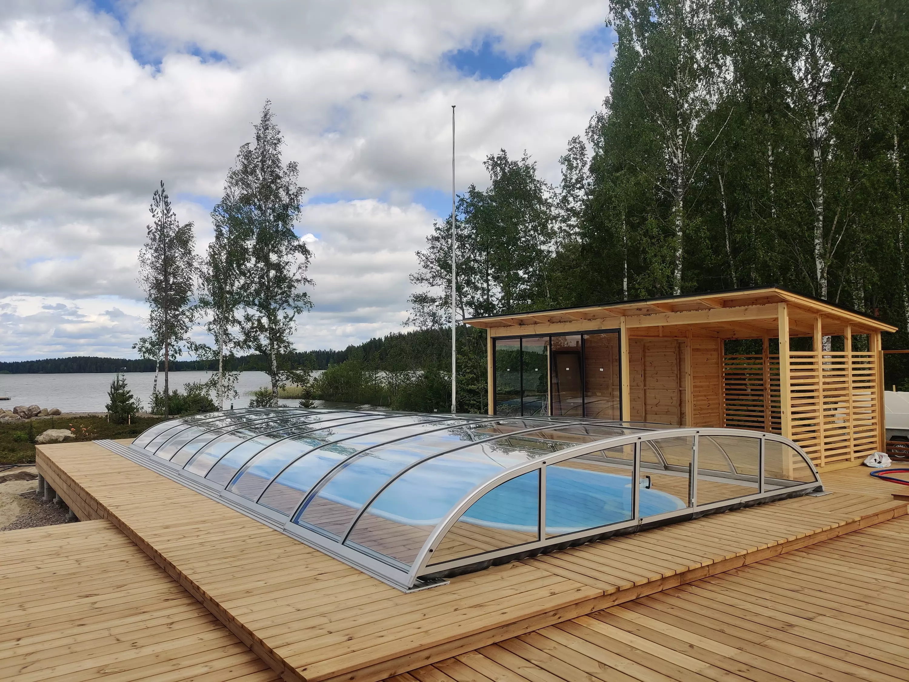 - 2500mm pitkät jatkokiskot myydään erikseen, hinta 350euroa Jatkokiskojen avulla liu-utat katteen kokonaan altaan päältä pois.