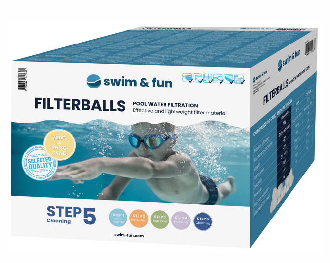 Vaihda suodatinpatruunat ja hiekka uusiin uima-allas suodatinpalloihin, niin saat vieläkin puhtaampaa allasvettä.