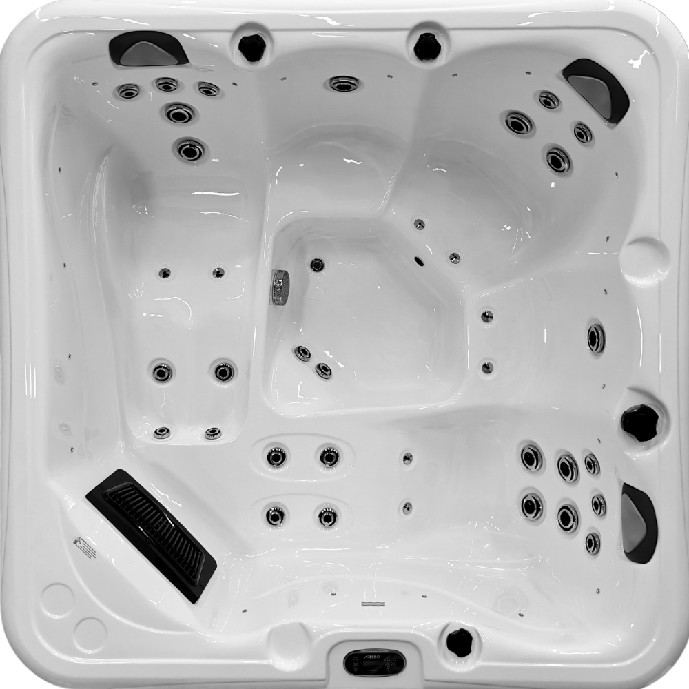 Aresso Momo on myymälässä näytillä valkoisena. Tervetuloa tutustumaan altaaseen paikan päälle!