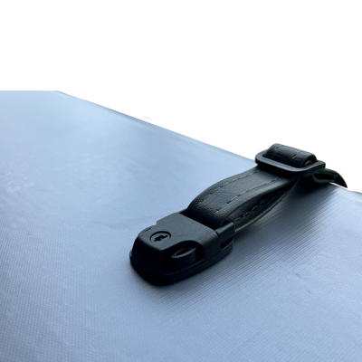 Ulkoporealtaan lämpökansi on varustettu suljettavilla turvaremmeillä, jotka lisäävät sekä käyttöturvallisuutta että energiatehokkuutta. Lukittavat remmit pitävät kannen tiiviisti paikoillaan, estäen lämpöhäviön ja suojaten allasta tuulelta, eläimiltä ja luvattomalta käytöltä. Turvaremmit ovat säänkestävää materiaalia ja varustettu kestävillä pikalukoilla, jotka on helppo kiinnittää ja avata.